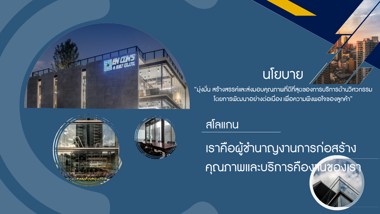 ด้วยเล็งเห็นถึงมาตรฐานในการทำงานมาตั้งแต่เริ่มก่อตั้ง บริษัท เอ็น คอนส์ แอนด์ บิลท์ จำกัด จึงมีความุ่งหมาย